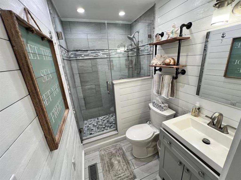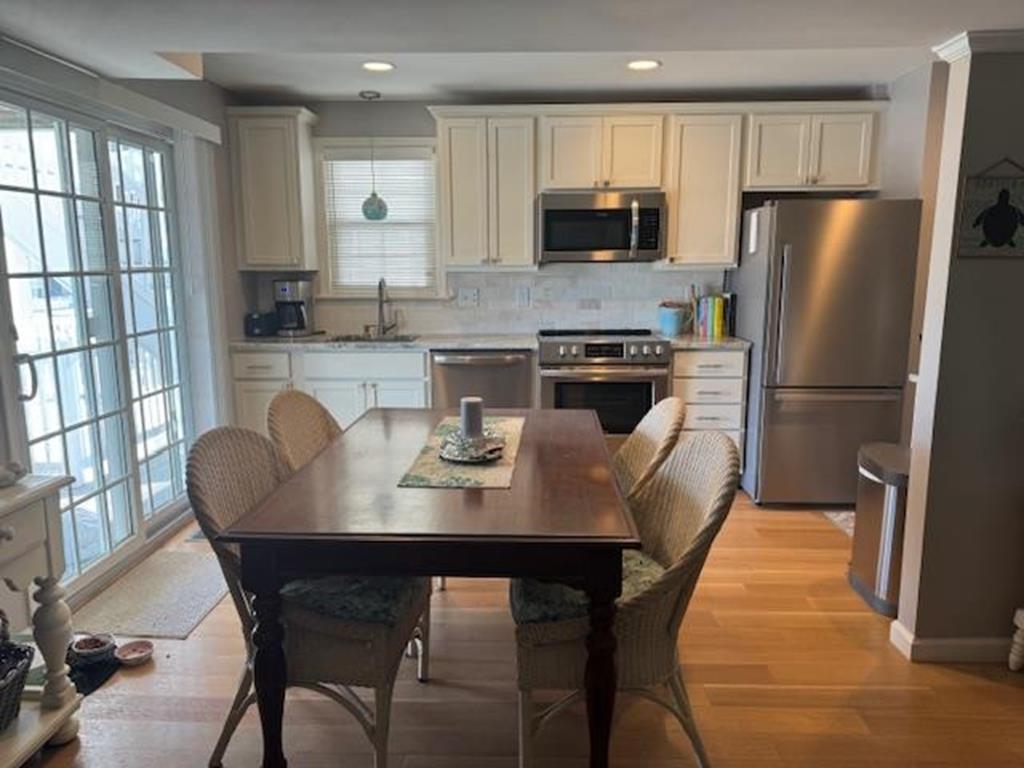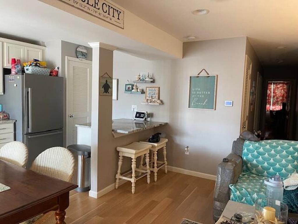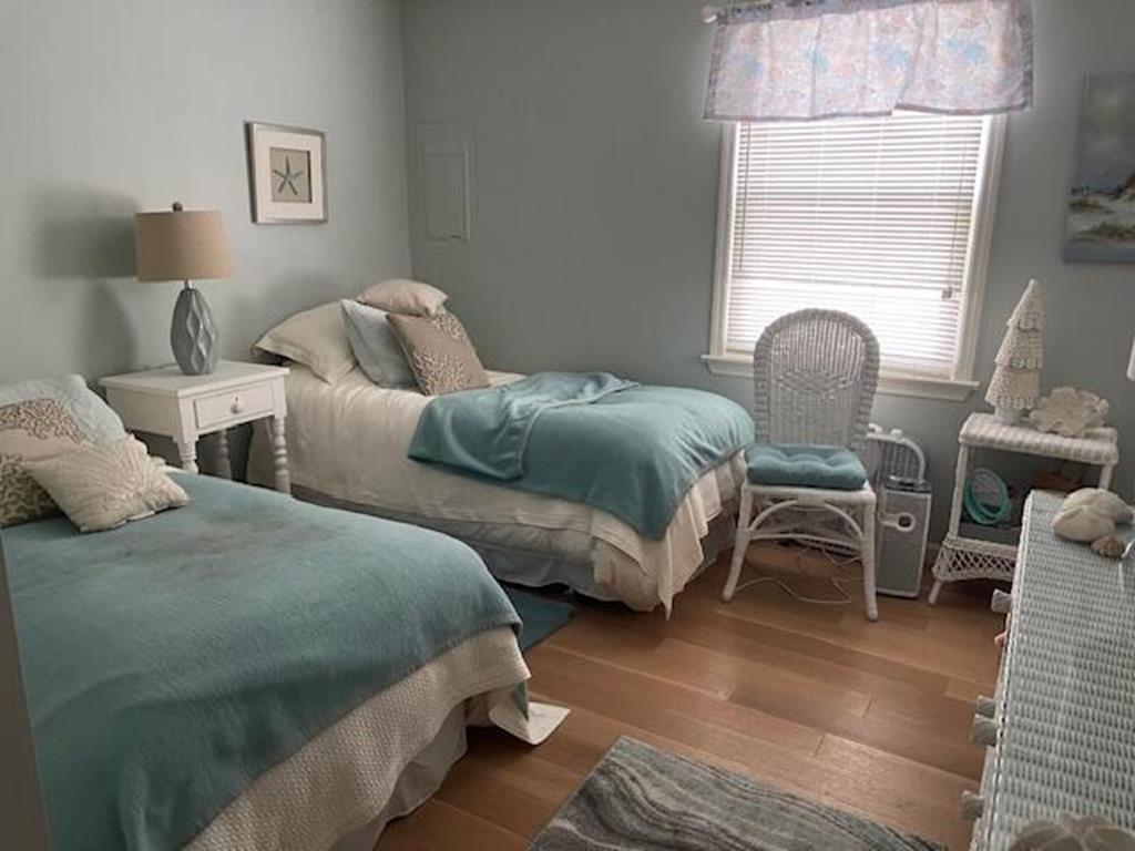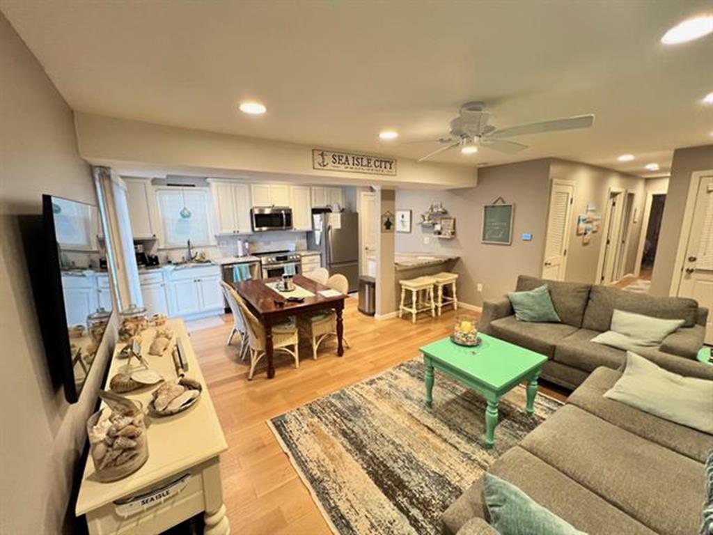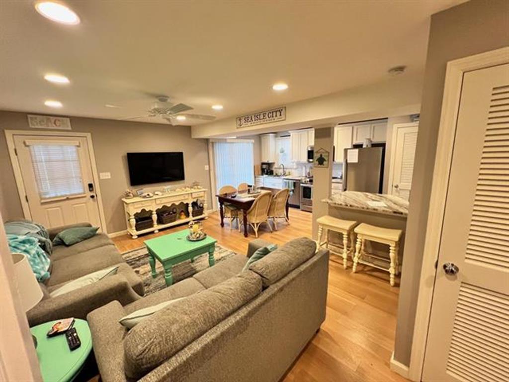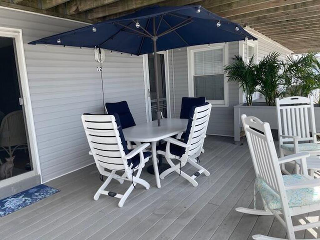 Sea Isle is at its best in this bright, charming 2 bedroom, 1.5 bath front condo just steps from the bay and less than a 5-minute walk to the widest beach on the island. This stylishly decorated home has 2 bedrooms, one with a king bed, and the other with two twin beds. There is one full bathroom off the main hallway and a bonus half-bath attached to one of the bedrooms. Just step out your kitchen door and relax: the private, wraparound deck with sought-after front-facing views will be your new favorite place to dine ,entertain, and watch Sea Isles stunning sunsets. The condo complex is centrally located in a quiet neighborhood just a few blocks from Dealy Fields tennis courts & playground, Kix/McNutleys restaurant, and Acme shopping center. The common areas of the property include 2 outdoor showers and bike racks. There is one private parking space conveniently located in the front.