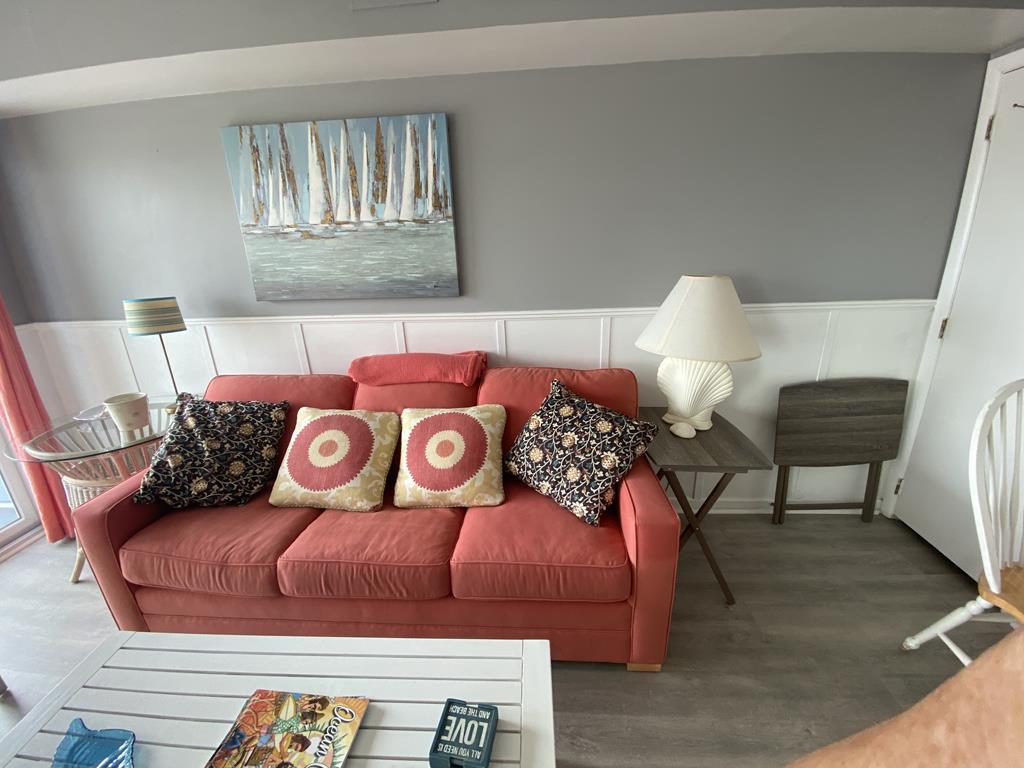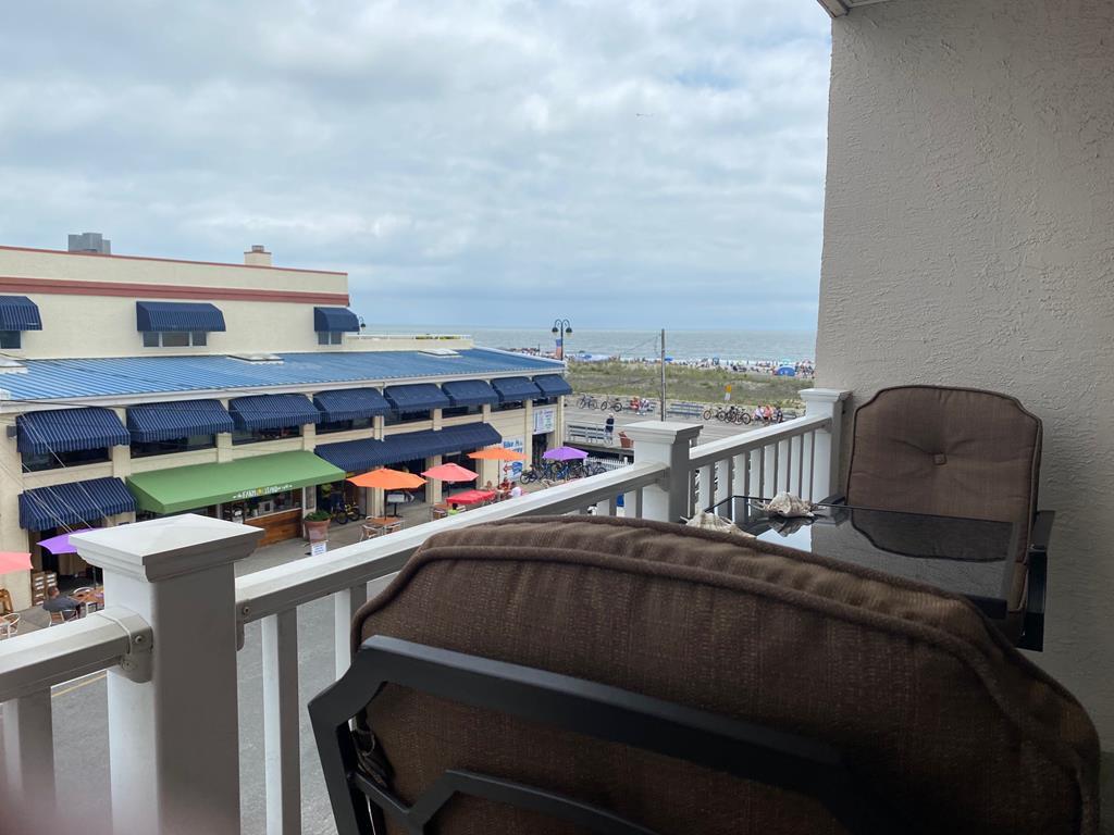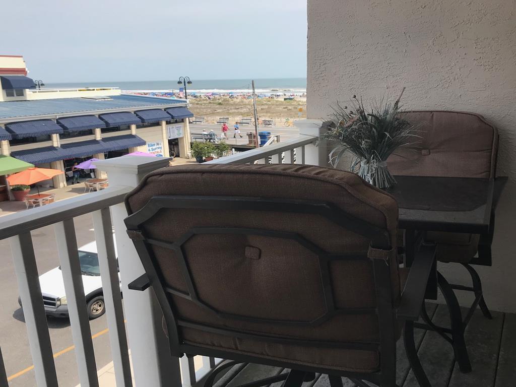 BEACH, BOARDWALK & POOL! This ocean view condo is waiting for you! Beautiful one bedroom, one bath north side unit in a boardwalk fronted building overlooking 14th Street and Bob's Grill sleeps up to 4 people. Private balcony with ocean views, full size fridge, dishwasher, private bedroom, central air, cable TV, internet, queen sofa bed in the living room, extra pillows and two beach tags. The building features an elevator, one assigned off street garage parking space, bike rack, outside shower, POOL (open daily 10-5 mid June through mid September). This is a great place to stay and enjoy Ocean City!