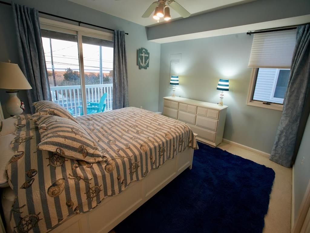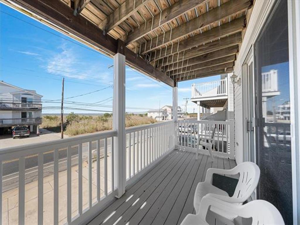 VIEWS..VIEWS...VIEWS...Ocean and Bay VIEWS!!! No streets to cross. Steps to the beach and promenade! First floor features 3 bedrooms & 2 full baths. Front bedroom is master bedroom with full bath, private deck facing the ocean, king bed, love seat/single pull out, EZ on/off fireplace, and TV. Middle bedroom has a pyramid bunk with double and single beds, and TV. Rear bedroom has queen bed and private deck with lovely bay views. 2nd floor features bedroom, full bath, direct ocean views from spacious kitchen, living & dining rooms. Large front deck with grill looks out at ocean. Living room has spacious, comfy queen pullout murphy-bed, TV and EZ on/off fireplace. Kitchen has counter bar seating for 4 and dining room seats 8. Off the kitchen is a pantry for food storage. 2nd floor bedroom has high ceiling, queen bed, and private deck overlooking the bay. 2nd floor pocket doors can create second master suite with full bath. Central Air, ceiling fans, Polywood deck furniture, and room darkening curtains throughout. This home is very clean and well maintained, bright and airy. Great vacation location! Sleeps 12: 1-King, 2-Queen, 1-Pyramid (1 Double & 1 Twin),