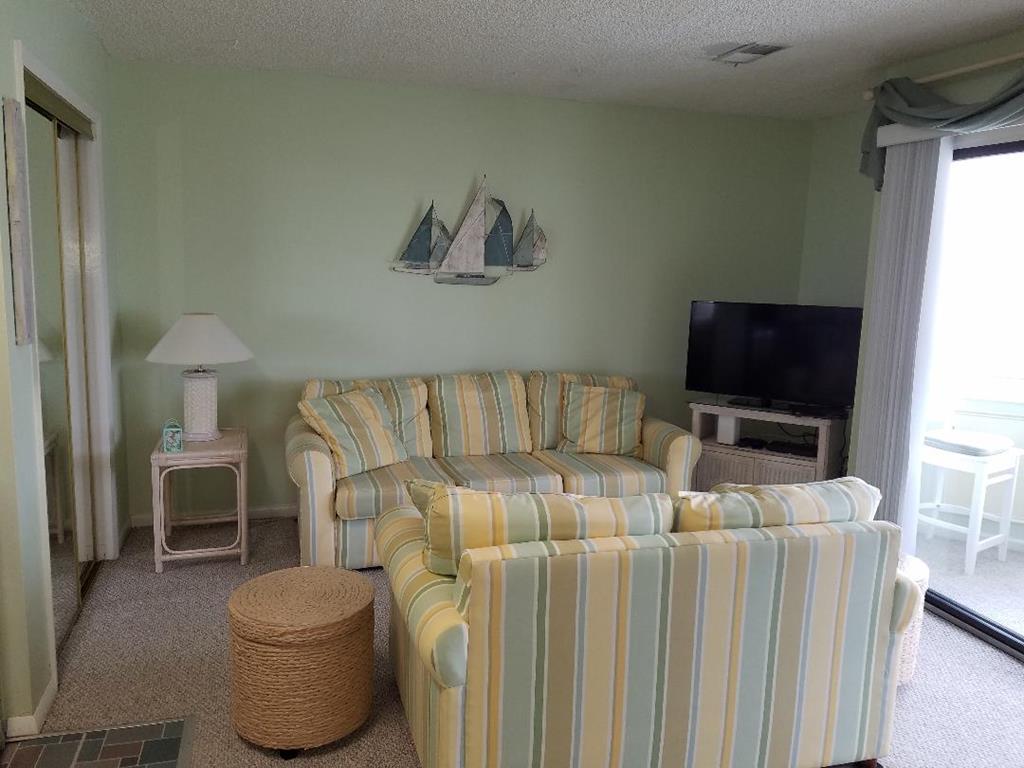 Sea Islander 3rd floor one bedroom, one bathroom condo located across the street from the Oar House Pub, Mike's Seafood and 3 blocks to the beach. Community pool, one assigned parking spot, washer and dryer in unit, full kitchen. Two queen beds and a queen sofa. No pets/No smoking.