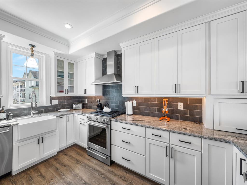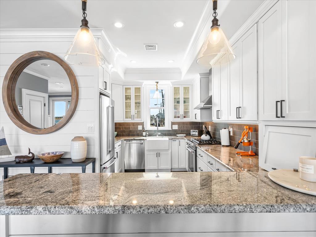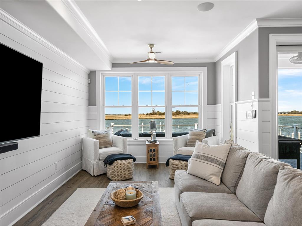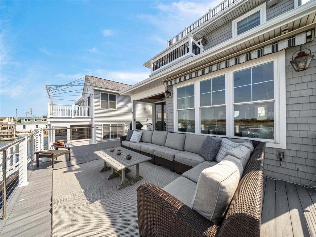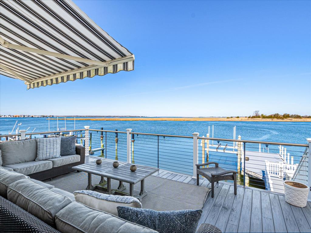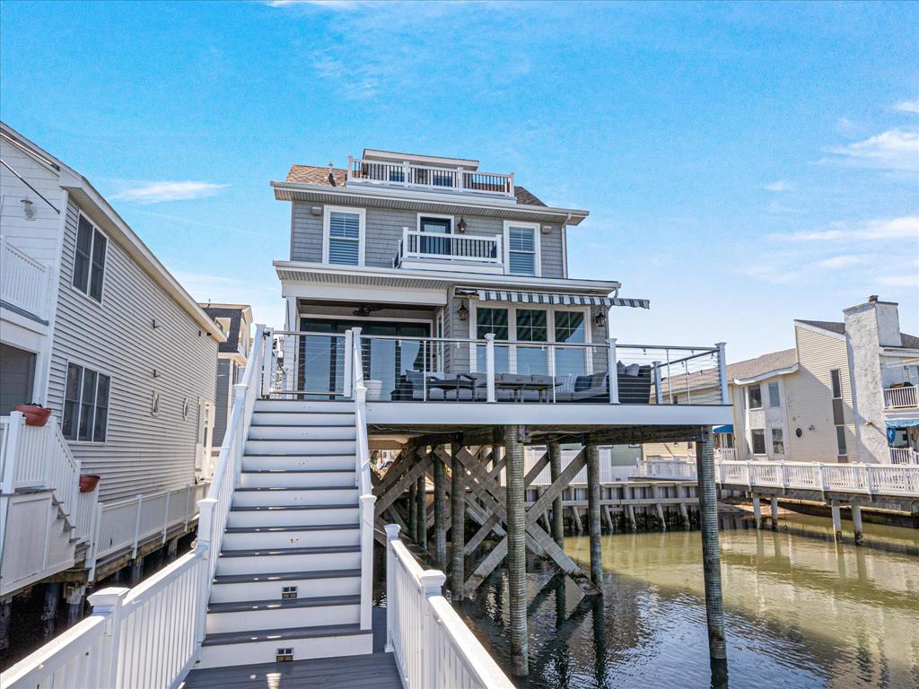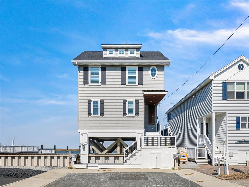 spacious open-concept layout is filled with natural light from expansive bay front windows with panoramic views and access to a LARGE deck with retractable awning. The kitchen features granite countertops, stainless steel appliances, and flows seamlessly into the dining area with a built-in bench—perfect for entertaining. The second floor offers four generously sized bedrooms, including a primary suite with a private en-suite bath and its own balcony overlooking the bay. Step outside to enjoy the oversized bay front deck, private dock with electric and boat lift—perfect for boating, jet skis, kayaking, paddle boarding, and more. All of this and an awesome location! Close to downtown shopping, the Boardwalk, Beach and restaurants!
