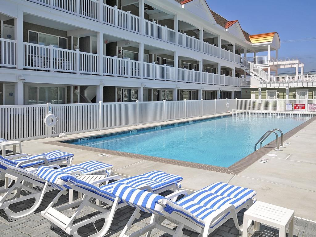 The Oceanview at Avalon Condominiums offers the perfect blend of location, amenities, and beach living accommodating up to 5 guests. Ideally situated on the beach block in Avalon’s sought-after South End, this cozy 2-bedroom, 1-bath condo is just steps from the beach, a heated pool, beach bars, and popular restaurants. It’s also within walking distance of community tennis, basketball, and pickleball courts. Located on the first floor, Unit 115 is the only condo in the complex with its own private patio. The unit features one bedroom with a queen bed and another with a pyramid bed (full on bottom, twin on top). The fully equipped kitchen includes a refrigerator, microwave, coffee maker, and dishwasher, while the living area offers an HD television, Central A/C, wireless internet, and convenient storage for your beach gear. Guests enjoy access to The Oceanview’s many amenities, including a large heated pool, sundeck, ocean view bar, fitness center, BBQ area, shared laundry facilities, and assigned parking. As an added bonus, the owner provides beach tags and chairs for your stay. This is a Friday-to-Friday rental and availability is limited—reserve today!